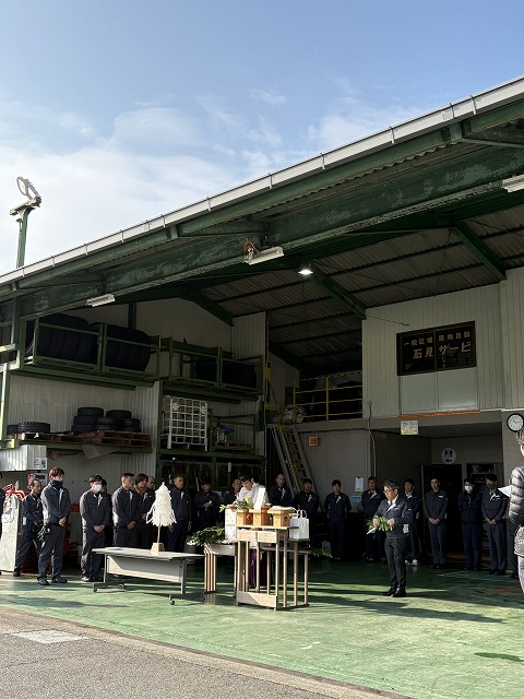 仕事始めは安全祈願祭から始まります。今年も、各員・各施設・車両にも、安全を祈願したお守りをいただき、一年の無事故、無災害を祈りました。